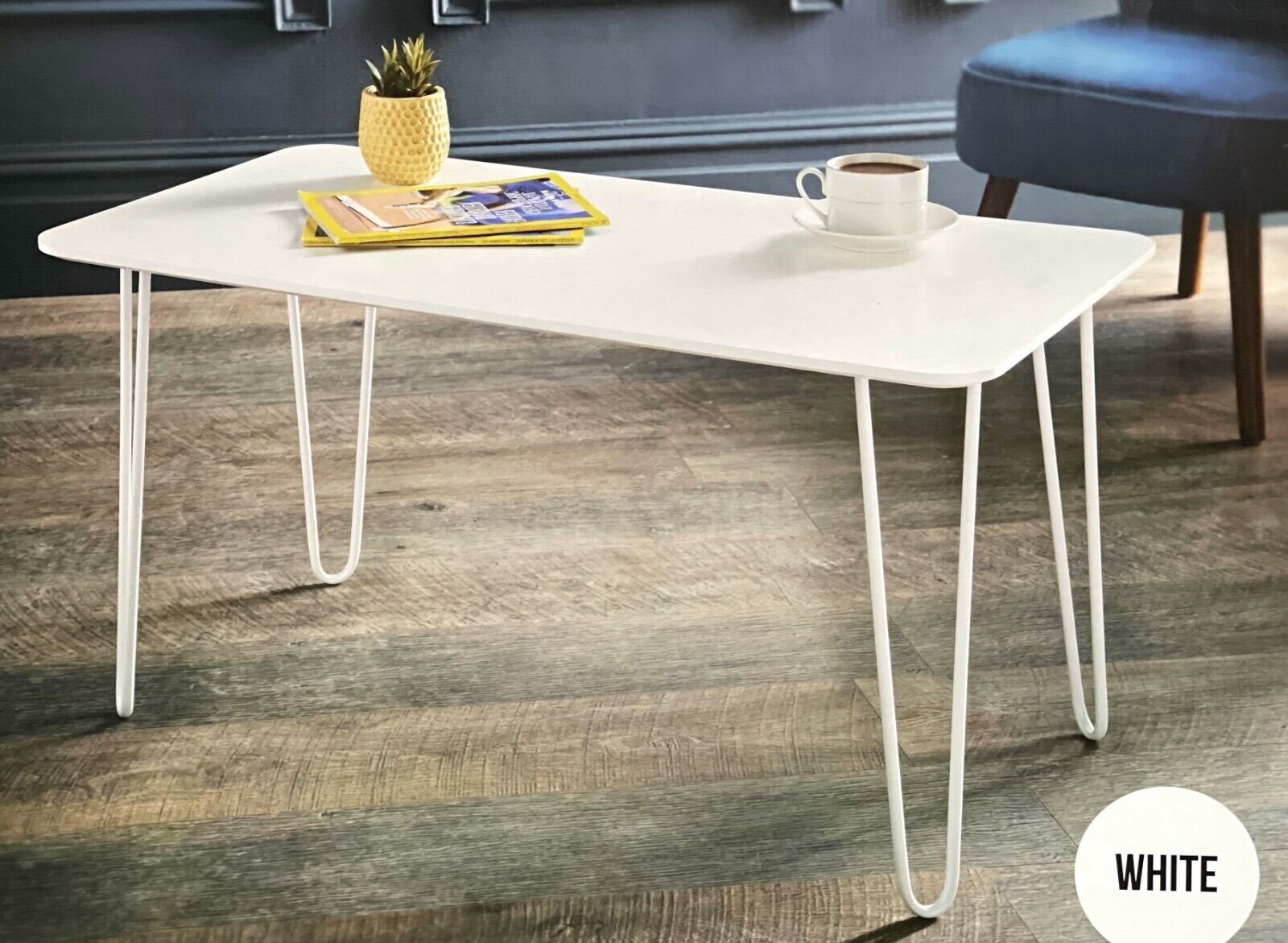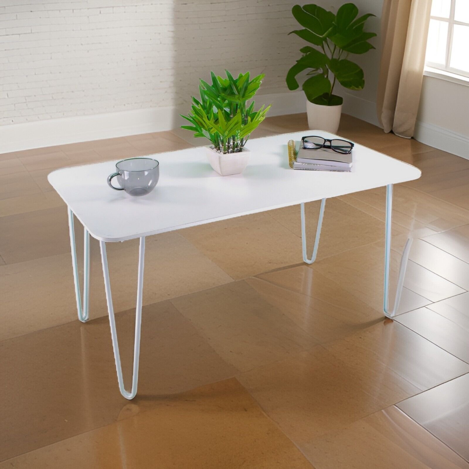 White Coffee Table With White Hairpin Leg Living Room Furniture Rectangle Table
